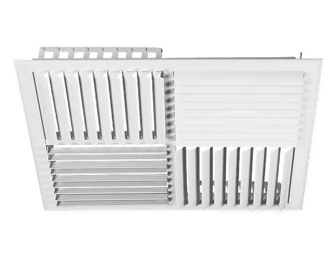 OSQ Ayarlanabilir Kanatlı Dört Yönlü Difüzör, dört farklı yöne dizilmiş kanatları sayesinde havayı homojen bir şekilde dağıtarak ısıtma, soğutma ve izotermal havalandırmada yüksek konfor sağlar.